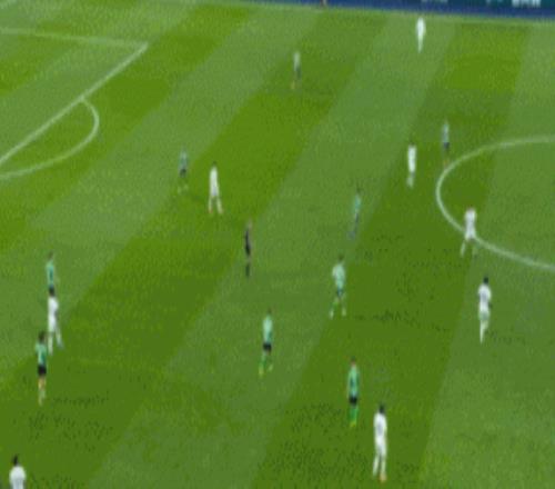 贡萨洛的第二个进球,可以说贝蒂斯防守人对他不够了解,没有第一时间贴防,给了他胸部停球的空间。不过谁也没想到,贡萨洛这脚射门在充分发力的情况下,精度那么高,直接打入球门死角。